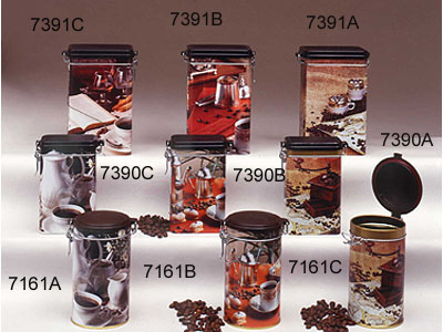 Description: These beautifully decorated storage tins feature five colorful classic and deco patterns. Available in 1 lb, 1/2 lb and 1/4 lb. capacities in rectangular, round or square shapes.