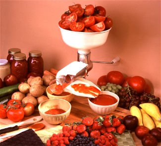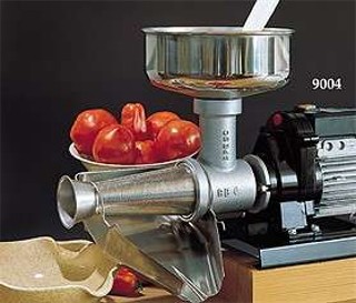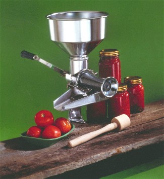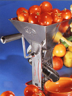 electric and manual tomato and food strainers, tomato squeezers, squeezo deluxe, victorio food strainer, villaware, spremy italian, roma strainer, velox, facem tre spade