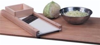 Three stainless steel blades, excellent quality wood . The authentic krauthobel. This old world utensil with the sliding box is traditionally used for slaw making. Choose from 2 sizes. Made in Slovenia
