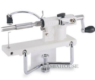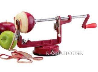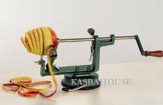 Built of cast iron; this apple peeler will peel, slice and core at once. Stainless Steel blades. Secures to the table with a strong suction base cup.