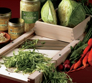 This wooden cabbage shredder is great for shredding cabbage or vegetables to make homemade coleslaw or sauerkraut. Simply place the cabbage in the wooden frame and slide it up and down while applying pressure to the cabbage, and shred into approximately 1 mm strips. Shredder is 23 ¾ x 9 x 3 ½ and comes with 3 stainless steel blades. You can fit a small cabbage head in the 7 square wooden frame. White Slicing board is coated and shredder disassembles for easy clean-up. Weston Brand. Size: 23.75" x 9" x 3.5" Made in China