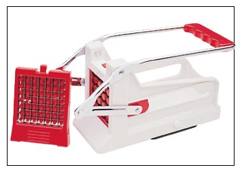 Cuts 25 regular or 49 shoestring fries with just a press of the handle. Vive la France!