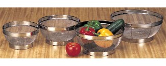 DISCONTINUED/OUT OF STOCK Wide bowl design with raised bottom for more efficient rinsing and draining. Perfect to clean fresh from the garden veggies! All Stainless Steel - choose from 4 sizes or choose the whole set and save $14.00!