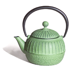 For those who require a large teapot! This graceful Japanese-style vessel for brewing and serving tea has a 46 oz. capacity. Made of specially purified cast iron, it is symbolic of strength and unity. A coating of black enamel is applied to the inner surfaces to help prevent the development of rust. A stainless steel infusing basket is supplied for ease of preparation. Made in China. 2 CAST IRON TRIVETS FREE!! 010mb