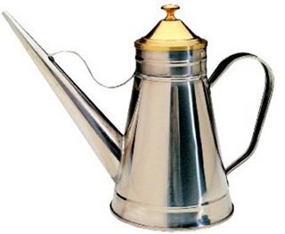 Description: Traditional type, pours a very thin stream of oil. stainless steel brass lid 8oz capacity.