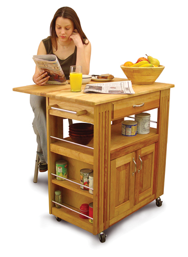 Catskill's latest island is a beautiful, rugged, traditionally styled piece of kitchen furniture that incorporates many of the features requested by discriminating buyers. As an island, the large 34" x 18" top provides ample working space for most food preparation projects, or enough space for a microwave plus a working area. An open shelf with access from all four sides is the ideal place for frequently used pots, pans, or containers. An enclosed cabinet lets you store small electric appliances. Shelves on both ends are perfect for spices and condiments. Use the large drawer for gadgets. Handles/towel bars are located on both ends. Heavy-duty casters allow you to move this island with ease. This island can and will be used for a myriad of uses such as a TV stand with VCR on the shelf, etc. Assembly is easy with common household tools. This unit utilizes the latest RTA hidden fastener system. Oil finish contains only FDA approved ingredients. 1544 FEATURES ■Overall Dimensions Assembled: 36 in. wide x 18 in. deep x 34.5 in. high ■Table Top Dimensions: 34 in. wide x 18 in. deep ■Interior Cabinet Dimensions: 20.5 in. wide x 14.25 in. deep x 15 in. high ■Open Shelf Dimensions: 28.5 in. wide x 14.25 in. deep x 7.25 in. high ■Interior Drawer Dimensions: 18 in. wide x 12.25 in. deep x 3 in. high 15445 FEATURES ■Overall Dimensions Assembled: 36 in. wide x 27.5 in. deep x 34.5 in. high ■Table Top Dimensions with drop leaf up: 34 in. wide x 27.5 in. deep ■Table Top Dimensions with drop leaf down: 34 in. wide x 16.5 in. deep ■Interior Cabinet Dimensions: 20.5 in. wide x 14.25 in. deep x 15 in. high ■Open Shelf Dimensions: 28.5 in. wide x 14.25 in. deep x 7.25 in. high ■Interior Drawer Dimensions: 18 in. wide x 12.25 in. deep x 3 in. high