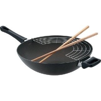 Includes 14" Xylan Non-Stick Wok, Aluminum Dome Lid, 14" Tempura Rack, 12" Bamboo Spatula, Bamboo Cooking Chopsticks, six pair bamboo table chopsticks, Steaming Rack, 12" Bamboo Thongs, Bamboo Rice Paddle, recipe/Instruction Booklet. Gift Boxed. 22-9938