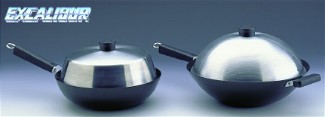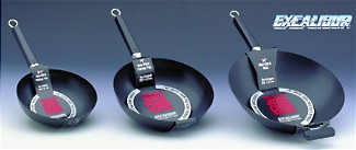 Pro Chef Excalibur Non-Stick Pan and Wok sets. Professional weight: 2.0 mm Heavy gauge carbon steel body. Stay-cool Phenolic handles. Excalibur reinforced non-stick coating - tough enough for metal tools 25 year warranty