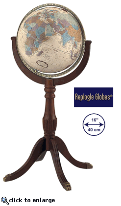 -An elegant solid-wood stand with brass claw feet and antique brass-plated meridian enhance the rich platinum metallic ocean