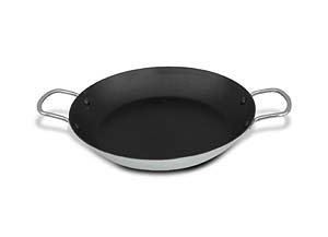 This Priority non-stick round stainless steel pan, with stainless steel handles, is most commonly used for creating egg, gratin and crème brulee dishes.