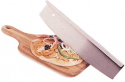 Rocking action of a large rounded blade is great for slicing, dicing and scooping up all kinds of veggies.