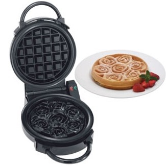 • Bakes a single 6" round waffle featuring an elegant rose bouquet • Brushed stainless steel housing