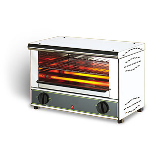 This snack toaster melts, crisps, toasts, bakes and glazes, in a small area. It is the authentic toaster for use in preparing Croque-Monsieur and Croque-Madame sandwiches, in addition to a wide variety of pastries, soups and other foods.