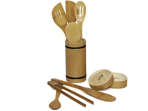 For a more natural look to your kitchen setting, this bamboo utensil set with canister offers function paired with Zen-like flare. Bamboo is both durable and won't affect the flavor of food - two great pluses for the gourmet cook. bamboo dishes