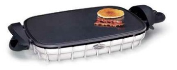 OUT OF STOCK • Makes four 3-1/4” pizzelles at a time • 750 Watts • Steam guard protect hands • Extra thick baking plates ensure even heat distribution • Cone roller included