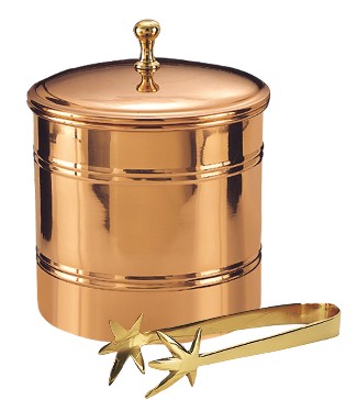 This décor copper ice bucket is a great way to make a good impression on any guest. The brass tongs are a beautiful contrast against the copper. The ice bucket is lined to keep the ice frozen longer. This item is lacquered to resist tarnishing