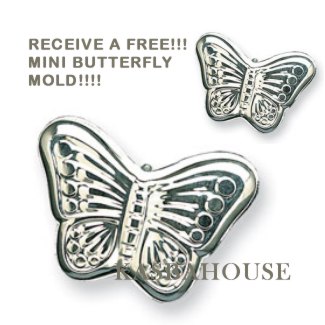 Tinplate butterfly mold for making beautifully shaped cakes for baby showers, birthdays and any occasion. 5 cup capacity. 12 inches. Made in Portugal. FREE!!! with the purchase of each butterfly mold, receive a FREE mini butterfly mold (3 1/2 inch) - perfect if you have any cake mix left or for making individual little butterfly desserts! (while supplies last)