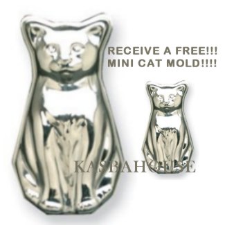Tinplate cat mold for making beautifully shaped cakes for baby showers, birthdays and any occasion. 5 cup capacity. 11 inches. Made in Portugal. Smaller mold is discontinued, sorry.