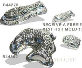 For cakes, jellies or other uses, these versatile fish shaped molds are made of excellent quality tinplate. Choose among straight fish 4.5 cup capacity plus free 5 inch mini mold; or curved fish 3 cup capacity plus free 3/4 cup mini mold. All Made in Portugal.