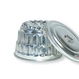 5 cup or 8 cup tinplate pudding mold with decorative walls.