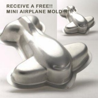 *OUT OF STOCK* Tinplate airplane mold for making beautifully shaped cakes for baby showers, birthdays and any occasion. 5 cup capacity. 9.5 inches. Made in Portugal. FREE!!! with the purchase of each airplane mold, receive a FREE mini airplane mold (3 3/4 inch) - perfect if you have any cake mix left or for making individual little airplane desserts! (while supplies last)