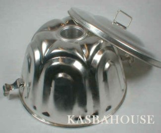 Steamed puddings need not just be Christmas centerpieces. There are recipes which are delicious almost any time of the year. This melon shaped Pudding Mold is decorative so that when the finished pudding (which is firm) is unmolded it retains its decorative shape. Includes lid that clamps tightly shut. The tinplate construction encourages uniform baking or chilling. 6 1/2 cup capacity. Made in Portugal