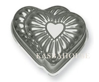 Traditional tinplate mold with a double heart shape - perfect for valentines, birthdays or any occasion. High quality craftsmanship and material; made in Portugal. Capacity: 8 cups. Dimensions: 10 inces x 9 inches