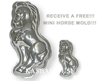 Tinplate horse mold for making beautifully shaped cakes for birthdays and any occasion. 6 cup capacity. 13 inches. Made in Portugal. *Free Mini Mold no longer available (sold out)