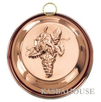 Molds cakes, mousses and pate with a beautiful grapevine motif. Traditional brass ring permits hanging flat against wall -Protective coating prevents tarnishing if used only as decoration -Lined with nickel -Measures 7-1/2 inches dia. Made in China