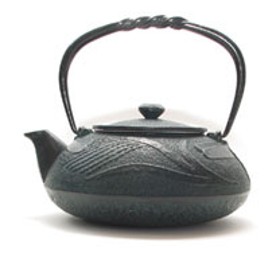 -OUT OF STOCK/DISCONTINUED- Verdigris Dragonfly Teapot A lovely raised design of graceful reeds and a pair of dragonflies animates this cast iron teapot glazed in deep indigo blue.