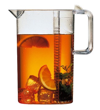The Bodum Ceylon Ice Tea Pitcher is great looking and easy to use! Made of see-through plastic, the pitcher can brew and serve both hot and cold tea. Features a removable clear infuser to keep your tea leaves brewing but out of the way when serving. With a capacity of 102oz. (3 Litres) the Bodum Ceylon Ice Tea Pitcher also holds and serves all kinds of delicious drinks like orange juice with mint leaves, sangria with lots of fruit slices or ice water with cucumber or lime slices. Brewing natural ice tea is easy with the Bodum Ceylon Ice Tea Pitcher. All parts are dishwasher safe and can be put in the fridge.