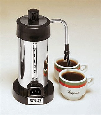 - OUT OF STOCK- electric espresso maker, cafe express When the correct temperature has been reached the coffee exits automatically into your cup or pot. Cases and filters are made of stainless steel with sturdy ABS top and bottom housing. Convenient and portable, it makes a great traveling companion. 2 cup size (remember these are espresso size cups) Made in Italy by Velox