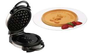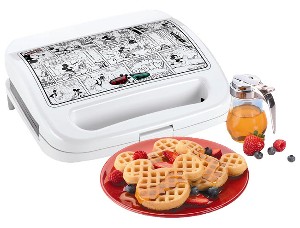 *** OUT OF STOCK! *** Bakes a single 6 in. round waffle featuring a full iamge of modern Mickey Mouse. Brushed stainless steel housing with commemorative etching; ready light; automatic thermostat; premium non stick coating; cool touch handles; convenient cord wrap; stands upright for convenient storage