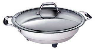 Entire pan is dishwasher safe Highly polished surface is stick resistant Removable temperature probe with adjustable heat settings Tempered glass lid Stainless steel handles secured with steel riveting 1500 watts Stainless steel body. Available in polished grids and Non-stick interior.