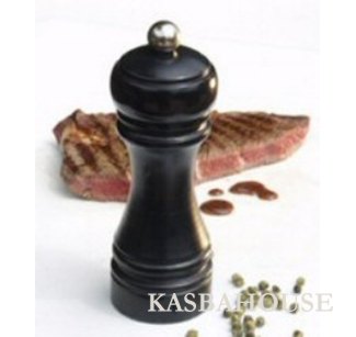 A simple black stained beech mill from Marlux. It has a unique mechanism which cracks the pepper instead of grinding it, making it perfect for 'steak au poivre'. It comes with a lifetime guarantee on the mechanism and stands 5 1/2 inches high. Made in France. Available in walnut (shown) or natural