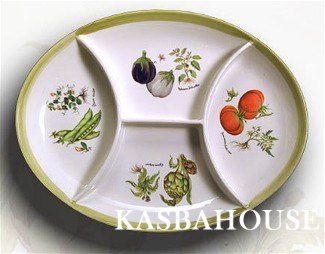 -OUT OF STOCK- 100% lead free ceramic. 100% italian made. Beautiful antipasto platter that perfectly complements our italian pasta bowls and dishes. Use them for olives, cheese, artichoke hearts, etc - delicious!. The design maintains the tomato, artichoke and eggplant motifs particular to this vegetable line. Microwave and dishwasher safe. 2 sizes available. Made in Italy