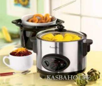 One Compact Unit Slow-Cooks, Deep-Fries And Steams. Instead of all those appliances cluttering up the cupboard or counter, the 3-In-1 Cucina Pro does it all! Converts from a 300W slow cooker with removable 4-qt. porcelain pot and see-thru tempered glass lid...to a 1000-watt deep fryer with 1.5-qt. non-stick fry pot and aluminum basket...to a family-sized steamer with aluminum steamer basket. Features easy-to-use control panel with adjustable temperature dial, detachable power cord and auto shut-off. Recipes included. UL Listed. 11''Hx12''Wx10¼''D.