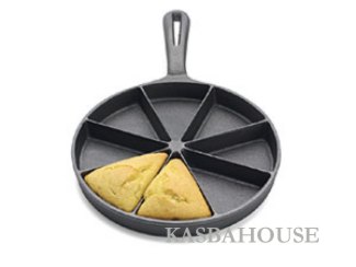 Bakes eight crusty 3-1-/2-inch wedges of cornbread 1 inch thick Cast iron unexcelled for heat distribution, retention; lasts for generations. This design exploits cast iron's baking advantages to ensure that a tasty crust envelops each wedge when it emerges from the oven. Because cast iron is unmatched for heat retention and distribution--no hot spots--that crust will be crisp and uniform. The skillet is 9 inches in diameter, and each wedge is 3-1/2 inches long and 1 inch deep. Confirmed by professional chefs and home cooks alike: "there is no better corn bread than that made in a cast iron skillet".