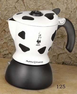 -DISCONTINUED ITEM- 125 The Mukka Express designed by Bialetti allows you to prepare two creamy mugs of Cappuccino. This is the latest design known as the "Cow" Works on gas, electric, and ceramic stove-tops. Instructional DVD included. Made in Italy.