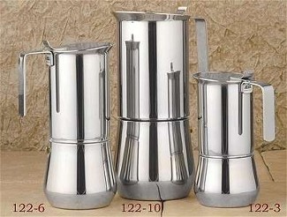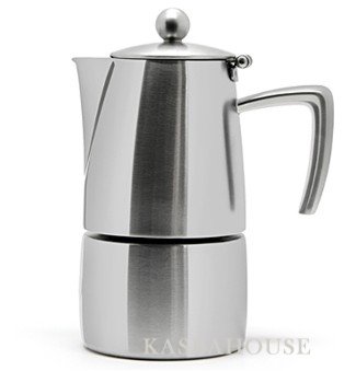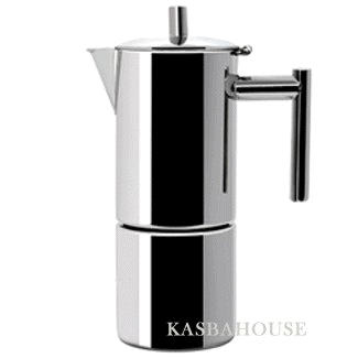 *DISCONTINUED ITEM* The mirror finish 18/10 stainless steel and sleek design give this Italian espresso maker an elegant yet modern look. Made of polished stainless steel. This is a top of the line stovetop espresso maker and it will perform as good as it looks. This pot comes with a divider that allows you to make half a pot. Complete the look with the Altho mirror finish milk pitcher in matching sizes. Made in Italy