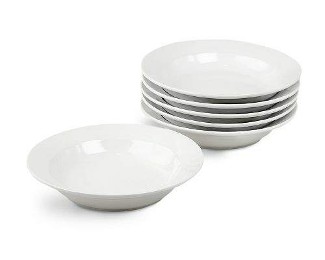 9" diameter, 4 piece set Deep dish bowls are popular all over the world. from Italian restaurants to old American diners. Authentic, heavy weight restaurant porcelain. Also a great salad plate. Made in China