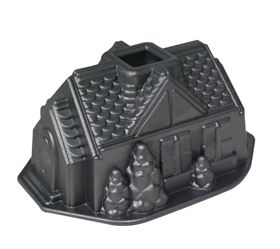 A cozy, gingerbread house was never so easy to make with our Gingerbread House Bundt. With its intricate detail, this fun pan is appropriate for the holidays as well as being a nice housewarming gift for a new homeowner. Our original Cast Aluminum Bakeware provides fine details and superior baking performance. Distinctive premium nonstick interiors allow for quick release and easy cleanup. Heat reflective silver platinum exteriors ensure uniform browning. 9 cup capacity. Limited Lifetime Warranty. * Length: 5.125 in (13.03 cm) * Width: 9.875 in (25.1 cm) * Height: 7.5 in (19.05 cm)