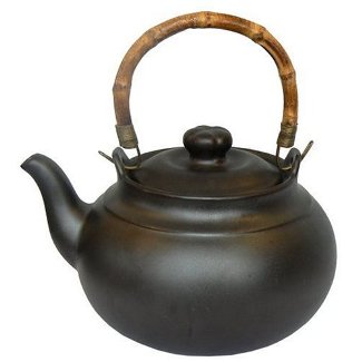 Stovetop Ceramic Tea Kettles Ebony Tea Kettle FEATURES: -Stove Top Teakettle -Heat Resistant Natural Bamboo Handle -Flameproof-Suitable for Gas or Electric Burners -Non-reactive matte glaze -A Joyce Chen Exclusive - Ebony Black color available ONLY This Chinese-style ceramic teakettle has been fired to 2,700 degrees F, making it tough enough to be put directly on your gas or electric burner. The kettle retains heat extremely well: The water continues to boil for 30 seconds after the kettle's been removed from the burner. In addition, the high-fired ceramic is nonreactive, which means the boiled water won't pick up unwanted flavors from the kettle. Classic style elements include a matte finish and a bamboo heat-resistant handle. --David Drury * Product Dimensions: 8.1 x 8 x 6.2 inches ; 3.5 pounds * Shipping Weight: 4 pounds